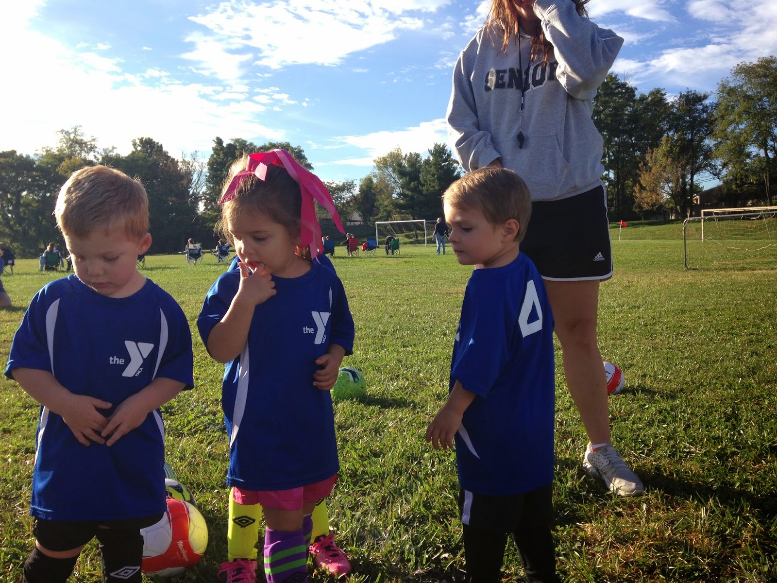 We also started our first year of soccer. They call this 3 year old soccer league a clinic because they don't actually play a game but they learn the rules of the game. It is ABSOLUTELY THE CUTEST THING EVER!! Owen is on a team with 8 of his friends. There is only one person on the team we don't know. We have the best time with all of our friends at the soccer field Saturday mornings. Get ready for cuteness overload...